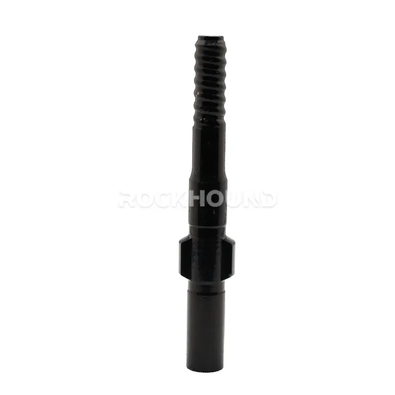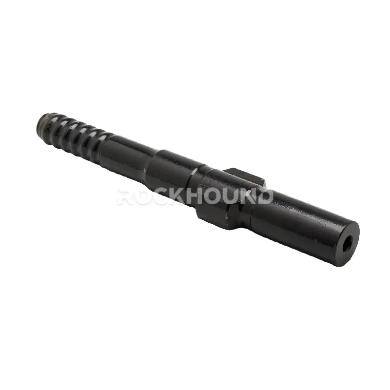 Ensure the shank adapter, drill rod, and bit are coaxially aligned within the feed guide before drilling. Off-axis loading creates bending stress, which dramatically shortens fatigue life.